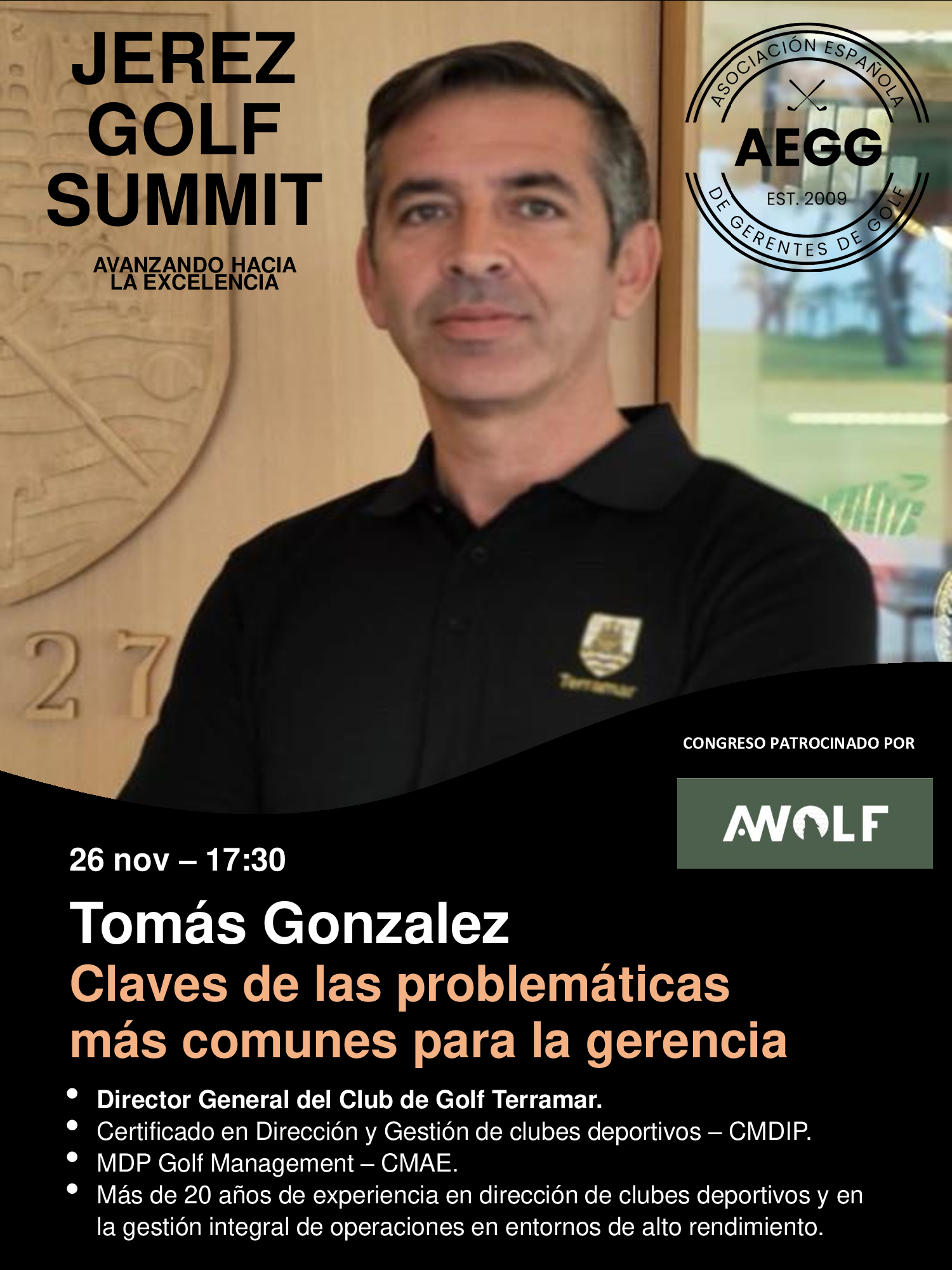 Tomás Gonzalez y Awolf. XIV Congreso AEGG 2024 "Jerez Golf Summit: Avanzando hacia la excelencia"