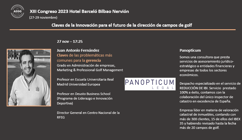 En el Congreso de Bilbao, contaremos con Juan Antonio Fernández, Director General en el Centro Nacional de Golf de la RFEG, y con nuestro colaborador Panopticum.